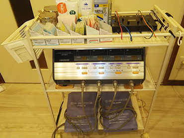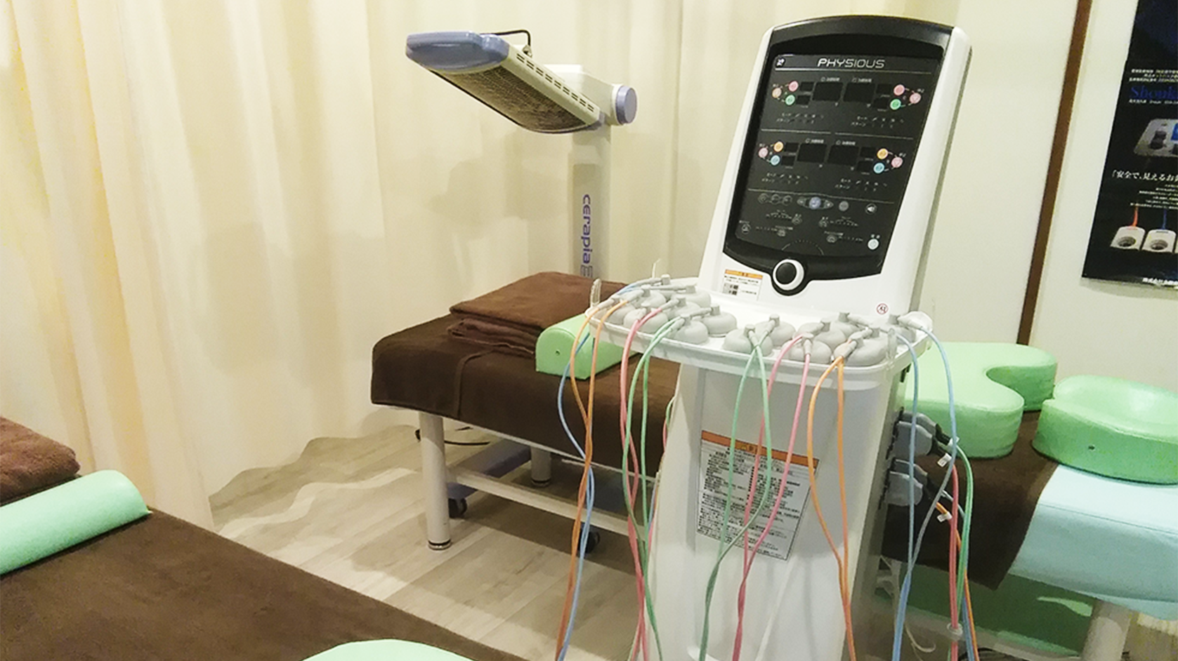 低周波・中周波・干渉波を用いて疼痛暖和効果、筋萎縮改善などに広範囲に治療が行えます。