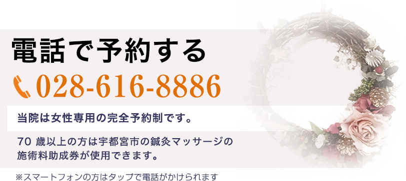 女性の皆さんの健やかな毎日のお手伝いをモットーに、お一人おひとりが抱えている辛い痛み、長引く不調が改善するようオーダーメイドの治療を組み立てて参ります。