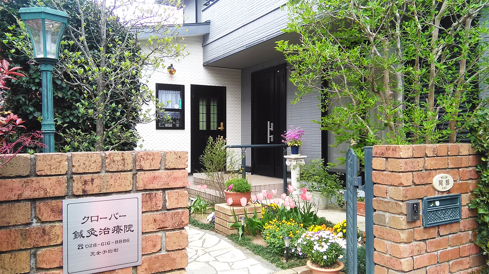 こんにちは。本日は沢山の鍼灸院の中からクローバー鍼灸治療院をご覧いただきありがとうございます。当院は住宅街の一角にあるプライベートな鍼灸院です。